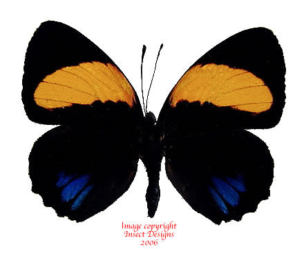 A-: These specimens have minor damage, such as antenna damage, or minor flight wear such as small scratches, minor sale damage, some minor fraying/chipping around the edges of the wings. In the case of beetles, the damage could be minor leg damage, small stains or scratches.