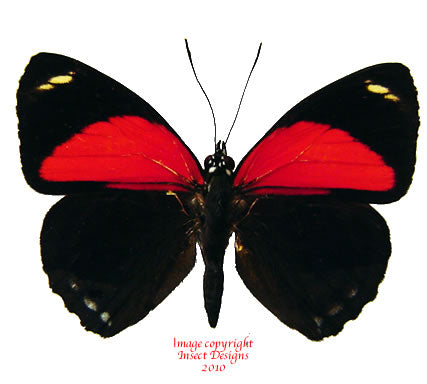 A-: These specimens have minor damage, such as antenna damage, or minor flight wear such as small scratches, minor sale damage, some minor fraying/chipping around the edges of the wings. In the case of beetles, the damage could be minor leg damage, small stains or scratches.