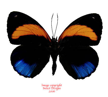 A-: These specimens have minor damage, such as antenna damage, or minor flight wear such as small scratches, minor sale damage, some minor fraying/chipping around the edges of the wings. In the case of beetles, the damage could be minor leg damage, small stains or scratches.