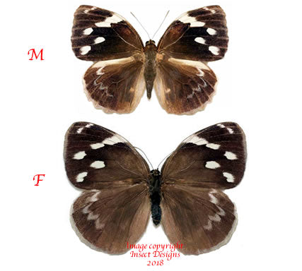 This specimen will be shipped dried with its wings closed together. Please read our illustrated instructions showing the method we use to hydrate and set our specimens. the male is on the left of the image.