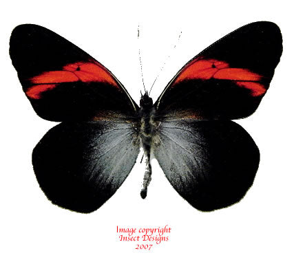 A-: These specimens have minor damage, such as antenna damage, or minor flight wear such as small scratches, minor sale damage, some minor fraying/chipping around the edges of the wings. In the case of beetles, the damage could be minor leg damage, small stains or scratches.