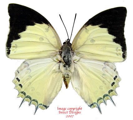 A-: These specimens have minor damage, such as antenna damage, or minor flight wear such as small scratches, minor sale damage, some minor fraying/chipping around the edges of the wings. In the case of beetles, the damage could be minor leg damage, small stains or scratches.